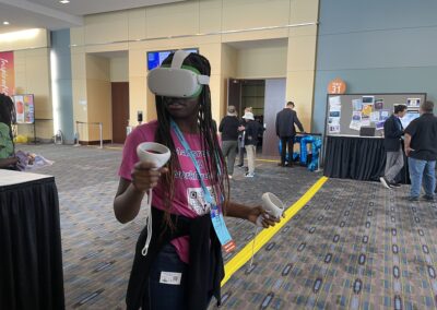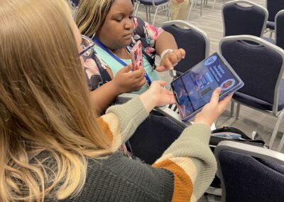 The VOISS team has been busy presenting at CEC, ISTE, AERA, having students play VOISS and educators explore VOISS Advisor. The poster above was recently shared at ISTE in Philadelphia and the pictures are of students and educators playing VOISS with us!