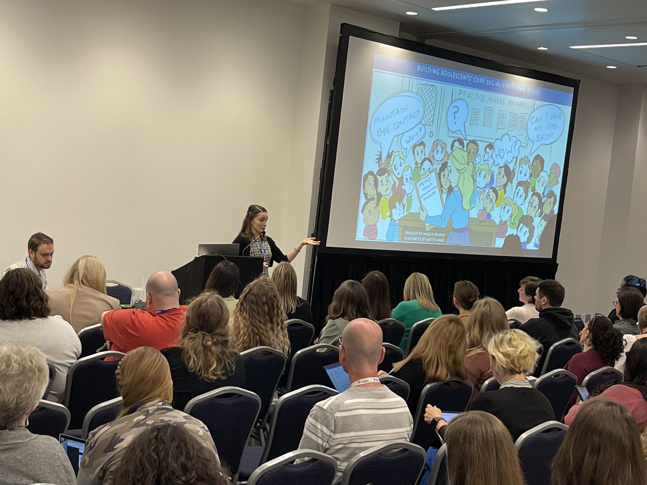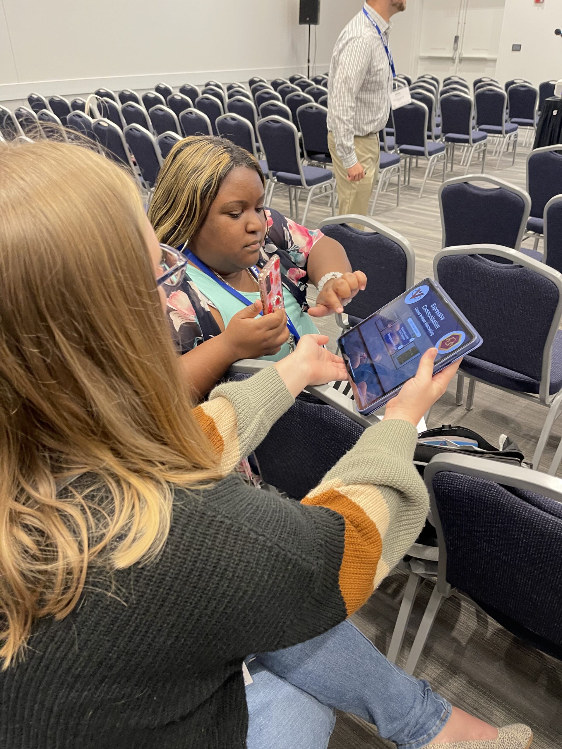 The VOISS team has been busy presenting at CEC, ISTE, AERA, having students play VOISS and educators explore VOISS Advisor. The poster above was recently shared at ISTE in Philadelphia and the pictures are of students and educators playing VOISS with us!